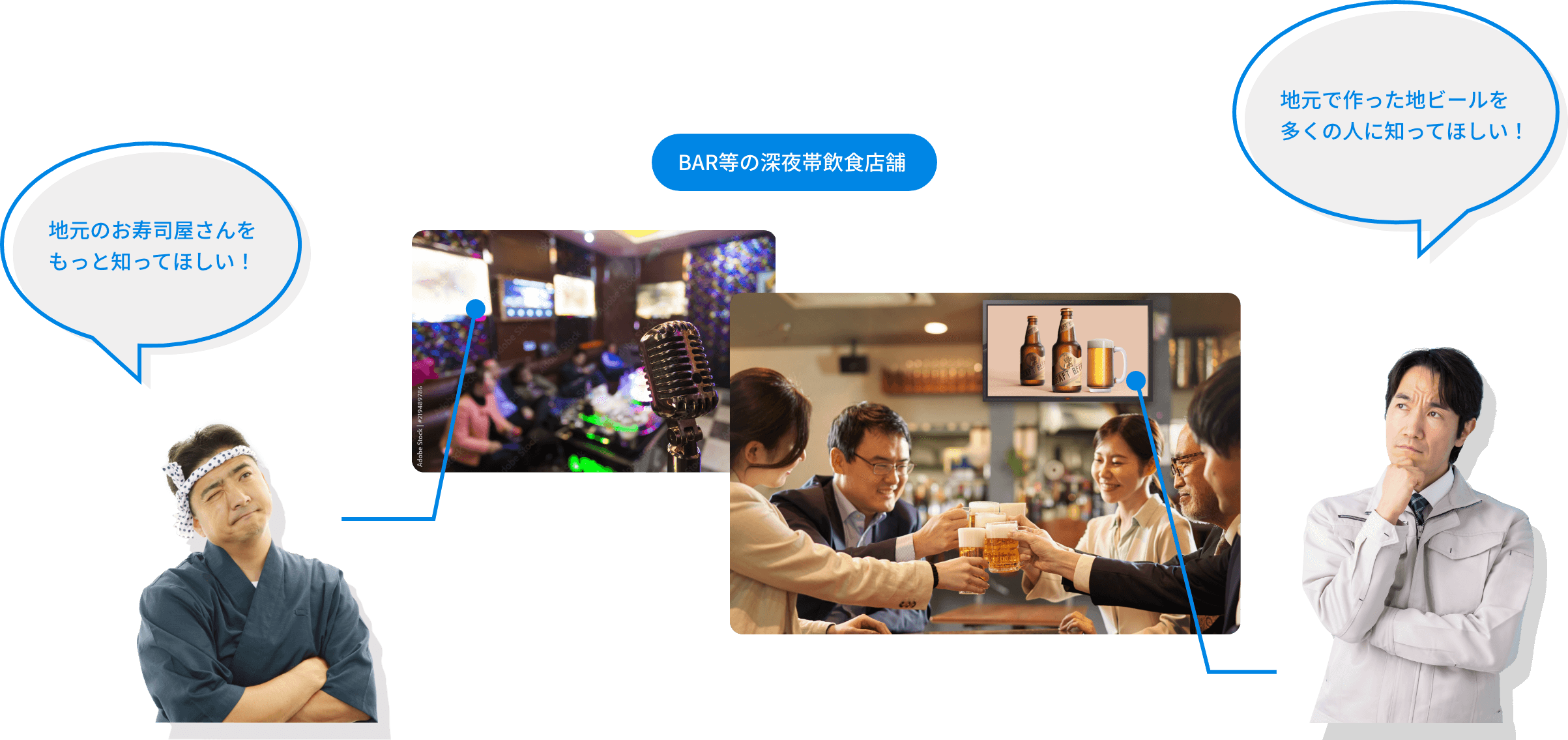 見てもらいたい人に最適な時間と場所にダイレクトに訴える地域密着型の動画広告サービスです。